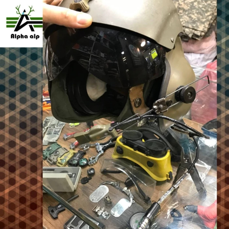 کلاه خلبانی سبز زیتونی SPH-4. این کلاه دارای یک گیره خاکستری و یک هدفون پلاستیکی مشکی داخلی است. این کلاه دارای یک سیستم تعلیق قابل تنظیم با اتصال شش نقطه در داخل است و توسط یک بند نایلونی چانه ای محکم شده است. یک میکروفون بوم "M-87/AIC" در سمت چپ وصل شده است. یک برچسب سازنده به سمت راست داخلی وصل شده است