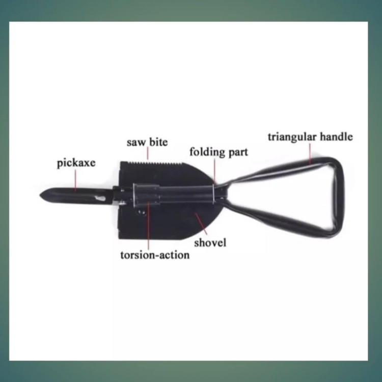 دارای 5 ابزار کاربردی: بیلچه/کلنگ/درب بازکن/قطب نما/اره جهت قطع خارو خاشاک 📌سبکه و کم حجم 📌خیلی راحت تو کولتون جا میشه 📌تیغه اره ای داره که براحتی شاخه و چوبای باریکو میبره