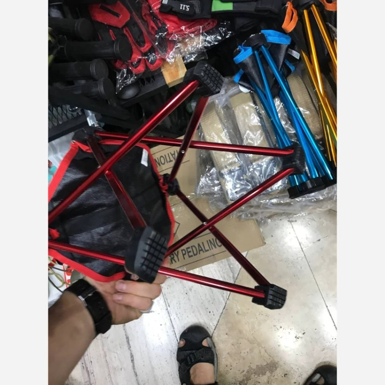 صندلي كوچك كمپي برند چانو داگ سبك و كم جا مناسب سفر و طبیعت گردی تحمل وزن تا 115 کیلو نوع جنس صندلی پلیاستر روکش مبلمان آلومینیوم مواد آلیاژ آلومینیوم