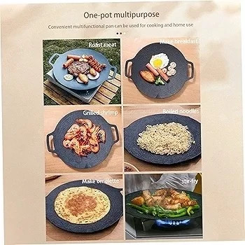 تابه کره ای کباب پز کره ای با یک منطقه پخت کمی مقعر، برای پخت و پز برای کل خانواده کافی است. دسته های دوتایی گوش و پایه های قابل جابجایی، حمل، پخت و تمیز کردن آن را بسیار آسان می کند. چند منظوره: تابه کره ای گرد کره ای برای انواع اجاق ها مناسب است و همچنین می توان آن را مستقیماً با هیزم گرم کرد و با تمام منابع حرارتی سازگار است. می توانید سرخ کرده و کبابی کنید، از استیک، بیکن، سوسیس، غذاهای دریایی، سبزیجات و غیره لذت ببرید. تمیز کردن آسان: روکش نچسب سنگ طبیعی مایفان، تمیز کردن فوق العاده آسان، فقط با یک حوله کاغذی پاک کنید یا با آب بشویید. تابه گریل وزن سنگینی دارد و رسانایی حرارتی خوبی دارد. کاربرد: تابه کباب پز می تواند انواع سبزیجات و گوشت را کباب کند، برای قرار دادن روی اجاق گاز و گاز پروپان بسیار مناسب است، برای مهمانی، کباب کردن کمپینگ یا سایر فعالیت های داخلی و خارجی بسیار مناسب است. سلامت و سازگار با محیط زیست: تابه کباب پز کره ای از آلومینیوم طبیعی و سازگار با محیط زیست با روکش سنگ مایفان ساخته شده است که مواد مضر تولید نمی کند و در برابر سایش مقاوم است.