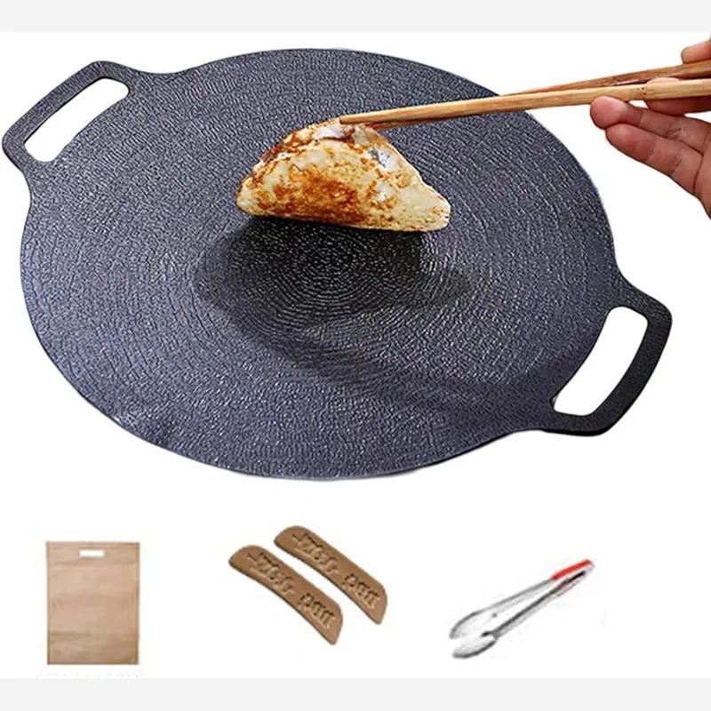 تابه کره ای کباب پز کره ای با یک منطقه پخت کمی مقعر، برای پخت و پز برای کل خانواده کافی است. دسته های دوتایی گوش و پایه های قابل جابجایی، حمل، پخت و تمیز کردن آن را بسیار آسان می کند. چند منظوره: تابه کره ای گرد کره ای برای انواع اجاق ها مناسب است و همچنین می توان آن را مستقیماً با هیزم گرم کرد و با تمام منابع حرارتی سازگار است. می توانید سرخ کرده و کبابی کنید، از استیک، بیکن، سوسیس، غذاهای دریایی، سبزیجات و غیره لذت ببرید. تمیز کردن آسان: روکش نچسب سنگ طبیعی مایفان، تمیز کردن فوق العاده آسان، فقط با یک حوله کاغذی پاک کنید یا با آب بشویید. تابه گریل وزن سنگینی دارد و رسانایی حرارتی خوبی دارد. کاربرد: تابه کباب پز می تواند انواع سبزیجات و گوشت را کباب کند، برای قرار دادن روی اجاق گاز و گاز پروپان بسیار مناسب است، برای مهمانی، کباب کردن کمپینگ یا سایر فعالیت های داخلی و خارجی بسیار مناسب است. سلامت و سازگار با محیط زیست: تابه کباب پز کره ای از آلومینیوم طبیعی و سازگار با محیط زیست با روکش سنگ مایفان ساخته شده است که مواد مضر تولید نمی کند و در برابر سایش مقاوم است.