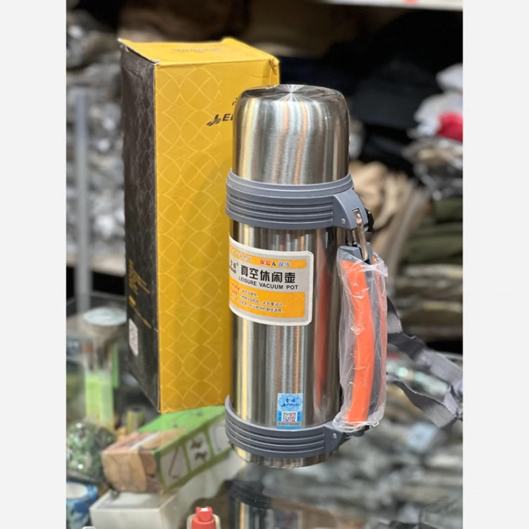 فلاسک یک لیتری استیل مسافرتی دسته دار وسیله ای کاربردی در زمان مسافرت و یا تفریح در طبعیت است . که باعث مقاومت و عمر بالای آن میشود. استفاده از استیل شرایطی ایجاد میکند که فلاسک در صورت افتادن، نشکند بین دو لایهی بیرونی و داخلی استیل از گاز استفاده شده است که موجب میشود دمای مایعات داخل فلاسک استیل مسافرتی دسته دار حفظ شود و بتوانید از یک نوشیدنی تازه لذت ببرید. دری که برای این فلاسک در نظر گرفتند را میتوان به شکل یک لیوان استفاده کرد تا به حمل لیوان اضافی نیازی نداشته باشید. آب گرم را تا 24 ساعت و آب سرد را تا 48 ساعت تازه نگه میدارد