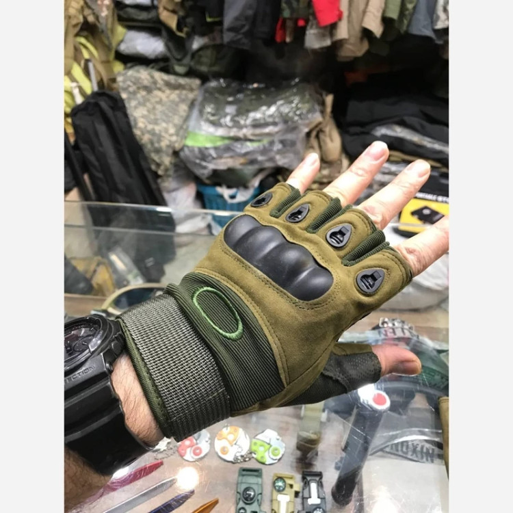 تنفس پذیر مجهز به گارد دست مجهز به چسب قابل تنظیم دارای لایه ضد لغزش در پنجه دست مناسب کمپینگ، طبیعت گردی، دوچرخه سواری دستکش تاکتیکال نیم انگشتی
