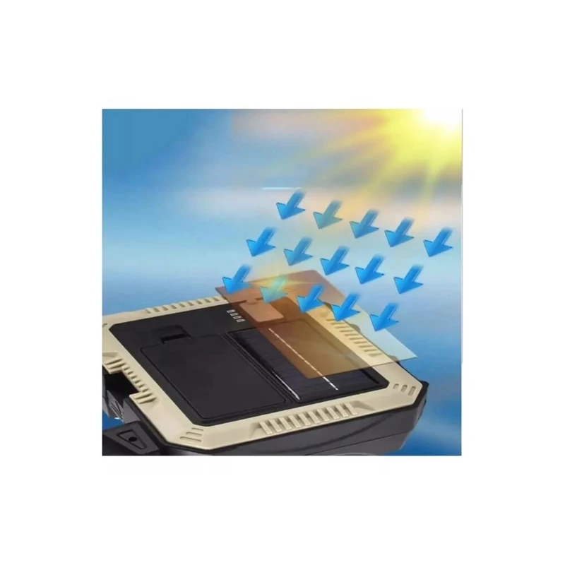 از جمله ویژگی های این پروژکتور انرژی خورشیدی: این چراغ به پنل خورشیدی مجهز است که به شما امکان میدهد بدون نیاز به برق شهری و در صورت لزوم آن را شارژ کنید. شارژ خورشیدی و شارژ USB: تا زمانی که یک کابل USB (شامل) یا برق خورشیدی وجود دارد، می توانید باتری را شارژ کنید. همیشه راهی برای بازگرداندن آن در فضای باز پیدا خواهید کرد. باتری با ظرفیت بالا: باتری لیتیوم یونی با ظرفیت بالا، زمان روشنایی طولانیمدت را برای این چراغ فراهم میکند. لامپ LED پرنور: لامپ LED مدل L-7739 پرنور این چراغ، نور کافی را برای روشنایی محیطهای مختلف فراهم میکند.و فضایی با وسعت روشنایی زیاد در اختیار شما قرار می دهد. چراغ پر قدرت COB : چراغ COB مدل 7739-C محصول از 6 قسمت پر نور تشکیل شده که محیط بسیار زیادی را برای شما نوراتی و روشن میسازد. ابزار چندکاره: علاوه بر نوردهی، این محصول به عنوان یک ابزار چندکاره نیز عمل میکند. معمولاً دارای ویژگیهایی مانند سیم چین ، متر ، چندین نوع آچار ، کاتر و… است. طراحی مقاوم: بدنه این چراغ معمولاً از مواد مقاوم در برابر ضربه ساخته شده است و بسیار محکم و ضد ضربه است.بدنه مقاوم این چراغ، باعث میشود که در برابر ضربه آسیب نبیند. منبع نور: نور اصلی، نور جانبی و چراغ قوه جلو در این چراغ جلوی پرقدرت ترکیب شده اند و از روشنایی در مقیاس بزرگ اطمینان حاصل می کنند. ترس از تاریکی با دیدن روشنایی زیاد از بین می رود. 5 حالت نور: با دو منبع نور 5 حالت روشنایی را فراهم می کند که برای موقعیت های مختلف مناسب و ایده آل است. قابلیت شارژ با انرژی خورشیدی و شارژ USB : این ویژگی باعث میشود که این چراغ در مکانهایی که دسترسی به برق وجود ندارد، بسیار کاربردی باشد. چندکاره بودن: این محصول علاوه بر نوردهی، کاربردهای دیگری نیز دارد که آن را به یک ابزار همه کاره تبدیل کرده است.دارای یکه جعبه ابزار داخلی عالی و مجهز ، یک چراغ قوه پر نور ، صفحه شارژ خورشیدی و یک پاوربانک عالی میباشد. باتری با ظرفیت بالا: این نورافکن شارژی خوشیدی با 2 عدد باتری بزرگ کار میکند که با یک بار شارژ، میتوانید برای مدت طولانی از این چراغ استفاده کنید در ضمن در صورت لزوم قابل تعویض میباشد. قابل حمل: اندازه کوچک ، وزن سبک ، حالت کیف مانند ، این چراغ، حمل و نقل آن را آسان میسازد و با خیالی آسوده می توانید آنرا همراه خود در هر کجا داشته باشید. نورافکن شارژی خورشیدی چندکاره Solar Portable Lamp پاوربانکی ، یک گزینه بسیار مناسب برای افرادی است که به دنبال یک منبع نور قابل حمل و چندکاره هستند. این چراغ با ویژگیهای متنوع و طراحی هوشمندانه خود، میتواند نیازهای بسیاری از کاربران را برآورده کند. این نورافکن دارای جنس بدنه از آلومینیوم و پلاستیک فشرده ABS ساخته شده ، دارای مقاومت در برابر آب و رطوبت است بازده نوری لامپ و میزان روشنایی (Lm/w): 10000 لومن می باشد ، در کل یک پروژکتور منحصربه فرد و بی نظیر بشمار می رود.