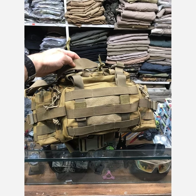 ساخته شده از مواد نایلونی با چگالی بالا. قابلیت اتصال به جلیقه یا کوله پشتی سیستم مول. با نوار چسبی 1 اینچی برای اتصال لوازم جانبی اضافی. کیف حمل دو حالته (دستی یا کمری). کیسههای فراوان با اندازههای مختلف برای نیاز شما. 5 محفظه زیپدار با محفظههای کوچک داخل آنها. جیب داخلی برای نظمدهی و محفظه توری دارای جیب جداکننده و جیب نظمدهنده. دارای جداکننده، حلقههای کشی و محفظه توری. محفظه زیپدار دو طرفه با جداکننده. زیپ دو طرفه برای باز و بسته کردن همه محفظهها. دارای بند حمل دستی و بند کمری پددار. بند کمری قابل تنظیم با پد بالشتکی و سگک آزاد، قابل پنهان شدن در محفظه عقب. سگک و بند مقاوم، سایز قابل تنظیم. قابلیت اتصال به کمربند ایمنی مناسب برای فعالیتدر فضای باز. جزئیات: رنگ - قهوهای کایوتی اندازه - حدود 24 سانتیمتر ارتفاع 35.5 طول x 14 سانتیمتر عمق وزن - 843 گرم