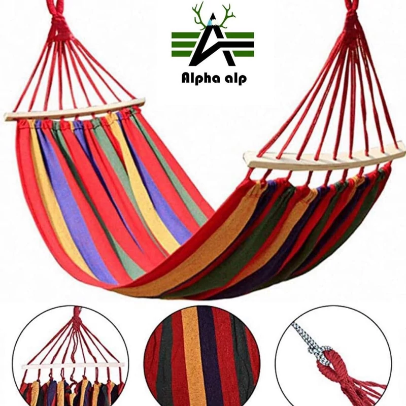 تخت آویز دونفره چوبدار، ننو کنفی دونفره چوبدار، تخت آویز کنفی دونفره مسافرتی